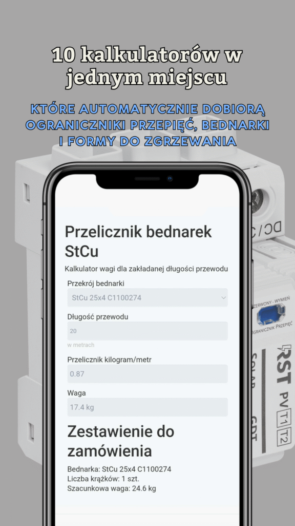 - Umożliwia automatyczny dobór m.in. takich elementów takich jak: ograniczniki przepięć, bednarki oraz formy do zgrzewania – wszystko w kilku sekundach