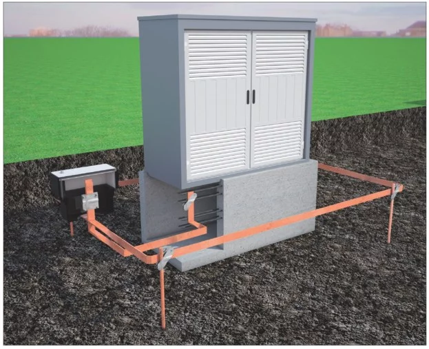 Rys. 4. Uziemienie stacji transformatorowej: 1 – studzienka kontrolno-pomiarowa,