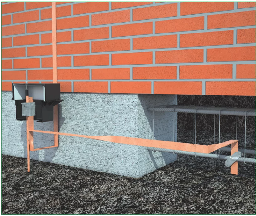 Rys. 3. Zalecane wykonanie uziomu fundamentowego z wykorzystaniem taśmy stalowej