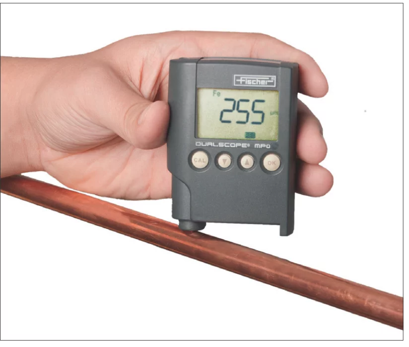 Fot. 6. Pomiar grubości powłoki pomiedziowanych uziomów pionowych GALMAR
