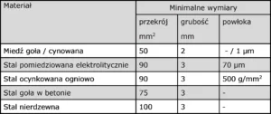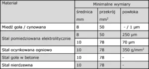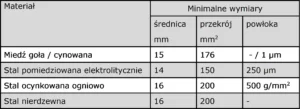 Tablica 3. Materiały i wymiary minimalne drutów